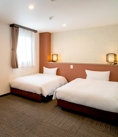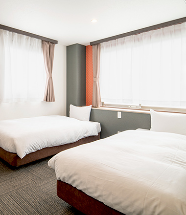 | 客房數 | 總客房數35間 ・單人客房4間(面積達12平方公尺) ・標準雙床客房(可當作為單人客房使用)24間(面積達15平方公尺) ・寬敞雙床客房6間(面積達17平方公尺)※可容納2~3人 ・豪華雙床客房1間(面積達26平方公尺)※可容納2~4人 |